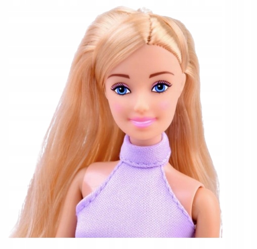 Lalka ma długie włosy, elegancką sukienkę i buciki. Obuwie wykonane jest z miękkiego, silikonowego tworzywa, dzięki czemu łatwo je nakładać i świetnie wygląda na stopach. Torebki i buty mają ozdobne detale, które sprawiają, że każda stylizacja prezentuje się wyjątkowo