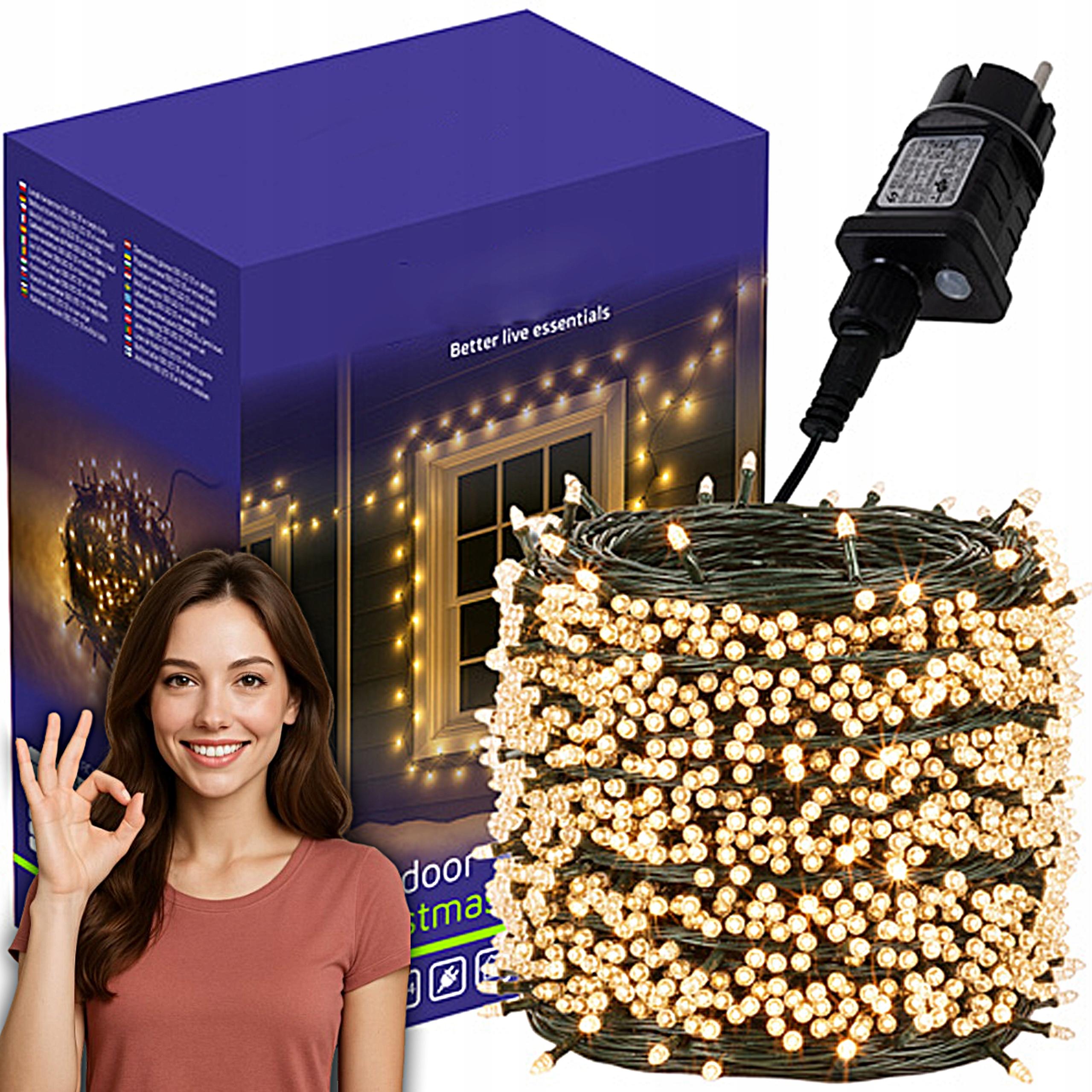 LAMPKI CHOINKOWE ZEWNĘTRZNE 500 LED CIEPŁE BIAŁE 35M FLASH 8 TRYBÓW ŚWIĘTA