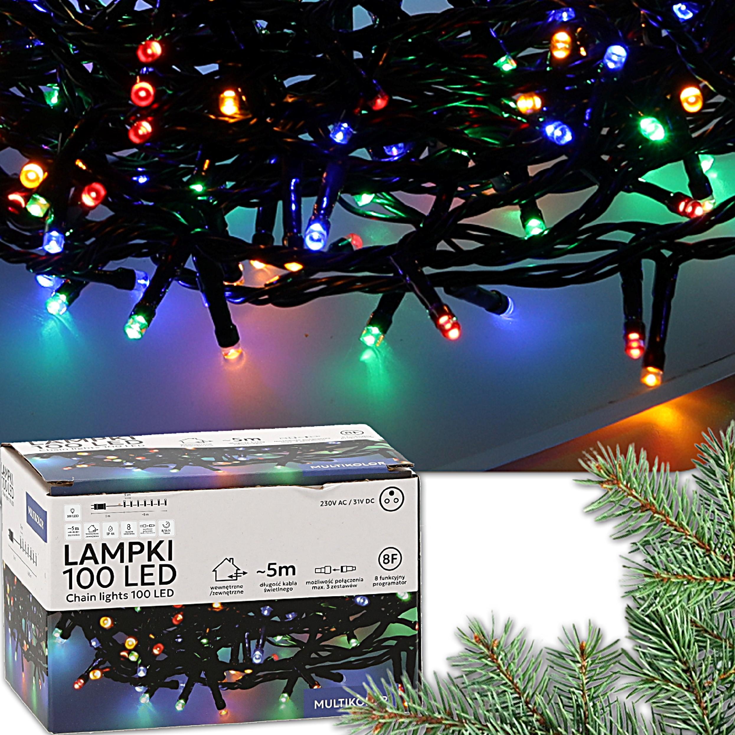✨Lampki choinkowe LED 100 diod – multikolor – 8 m z programatorem i timerem✨