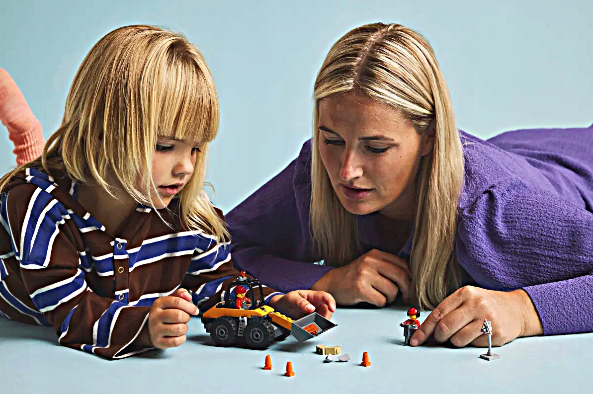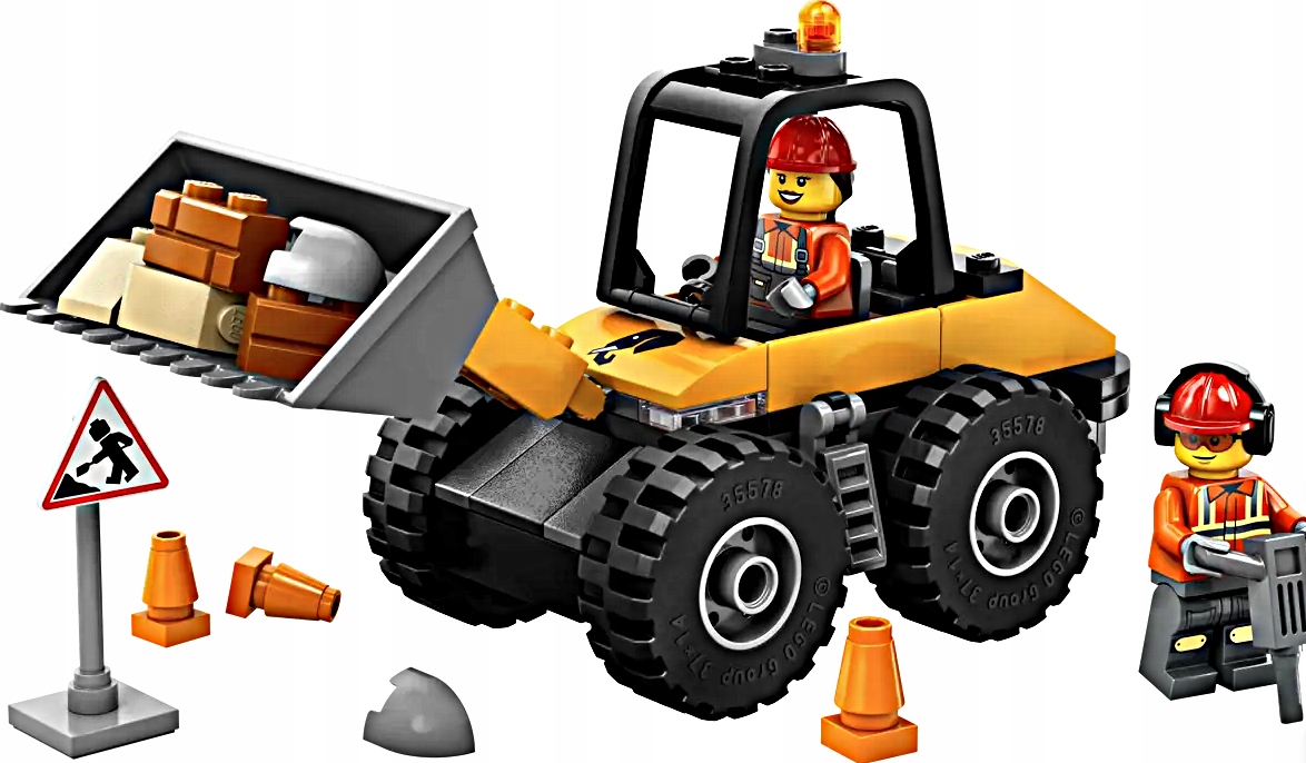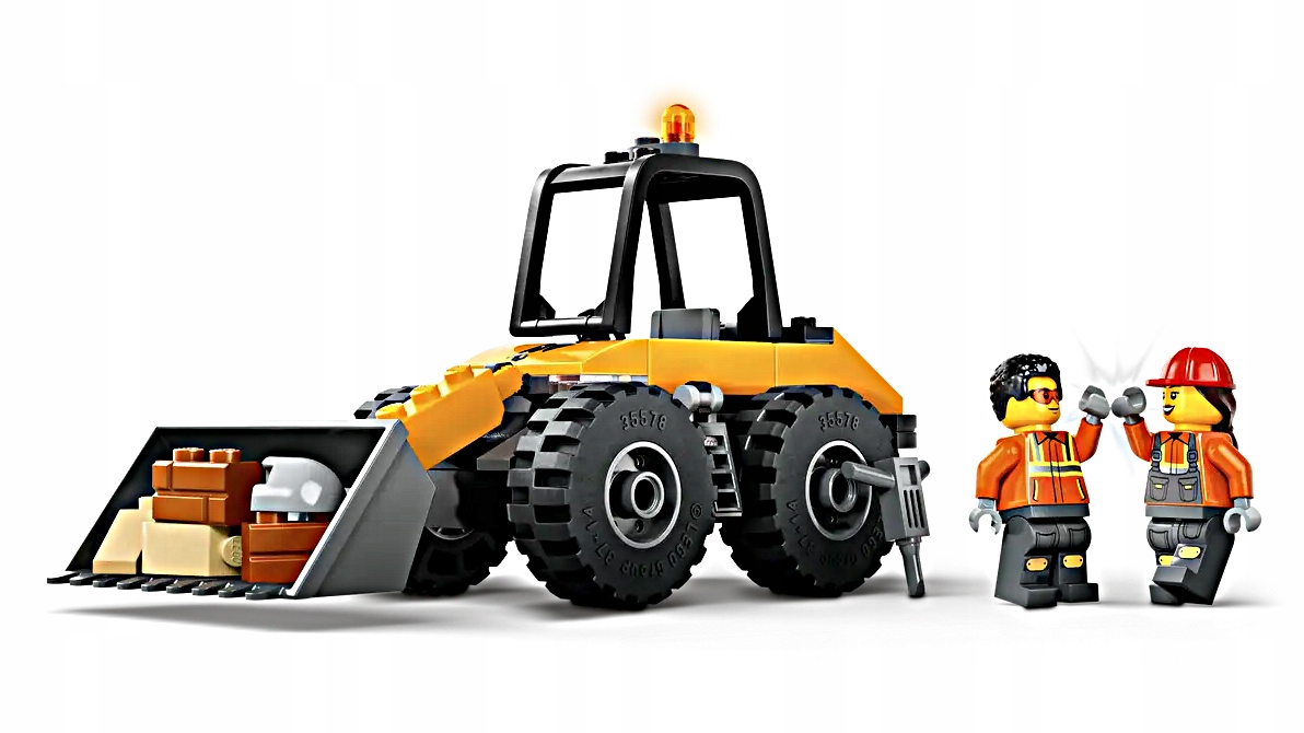 - Zabawa z postaciami – dwie minifigurki zachęcają do odgrywania ról i tworzenia opowieści o pracy ekip budowlanych.