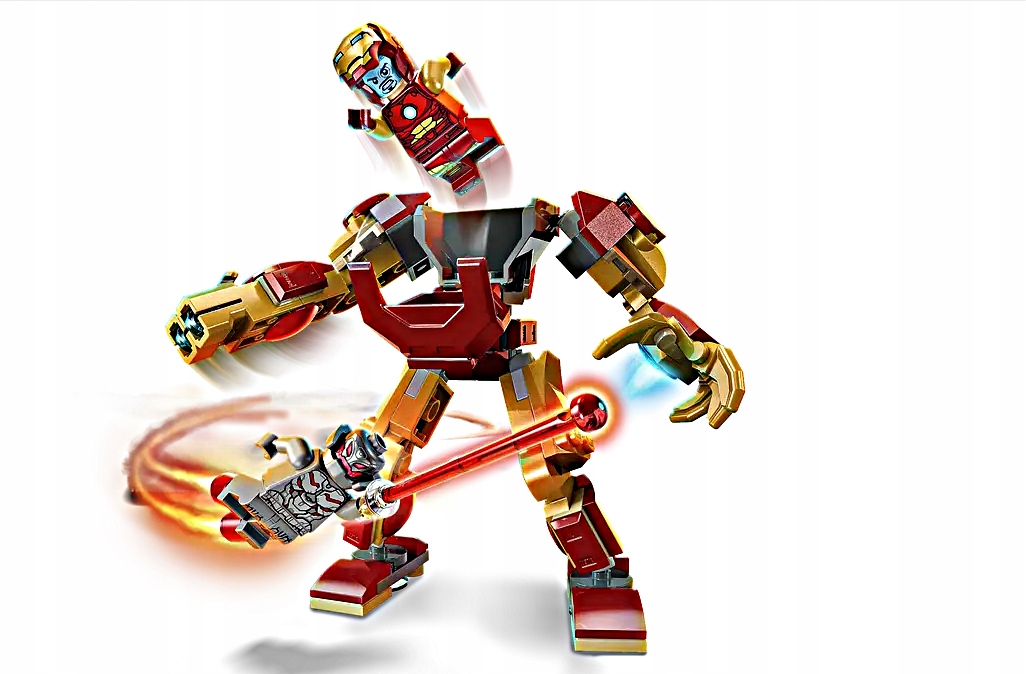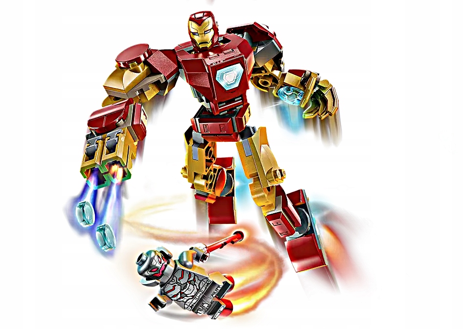 Centralnym elementem zestawu jest mech Iron Mana – imponująca konstrukcja z ruchomymi ramionami, nogami i palcami, pozwalająca na ustawianie różnorodnych pozy bojowych. Mech został wyposażony w podwójny miotacz klocków umieszczony na prawej ręce, co dodaje realizmu i intensyfikuje rozgrywkę. W tułowiu znajduje się otwierany kokpit, do którego można posadzić minifigurkę Iron Mana i przygotować ją do walki.