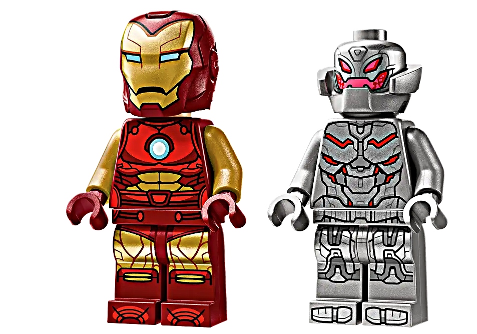 W zestawie znajdują się dwie minifigurki: Iron Man z otwieranym hełmem oraz wymiennymi wyrazami twarzy, a także Ultron uzbrojony w laserową broń. Dzięki temu dzieci mogą tworzyć własne scenariusze bitew i rozwijać wyobraźnię podczas zabawy.