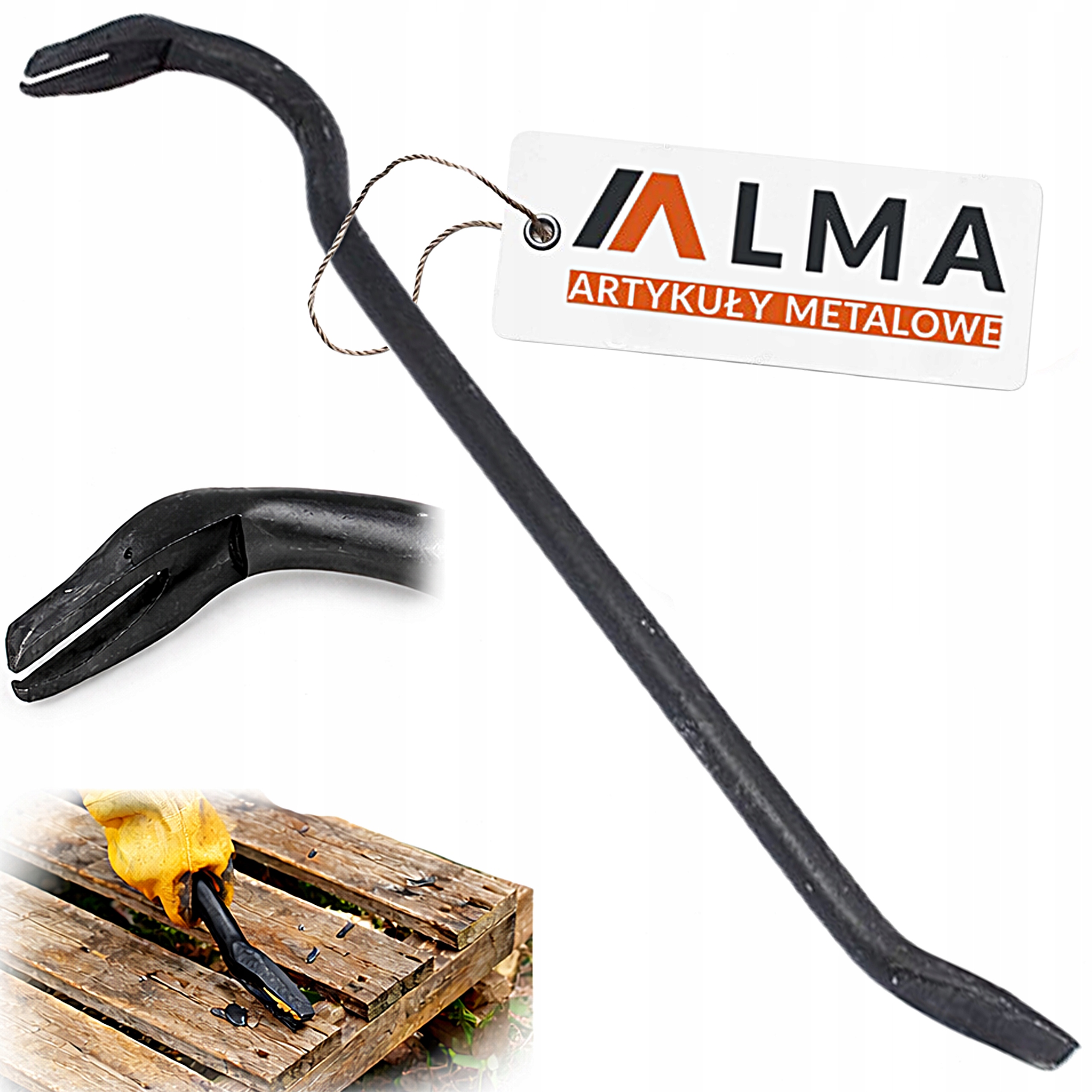 Dwustronne zakończenia zwiększają funkcjonalność narzędzia — z jednej strony znajduje się zaokrąglona łapka do skutecznego wyciągania gwoździ, również zardzewiałych lub zagłębionych w drewnie, z drugiej spłaszczona końcówka typu łyżka przeznaczona do podważania drzwi, listew, płyt oraz cięższych elementów konstrukcyjnych. Długość 500 mm zapewnia lepszy efekt dźwigni przy zachowaniu wygodnej mobilności. Gładki uchwyt stalowy sprzyja pewnemu chwytowi i dobrej kontroli podczas pracy.