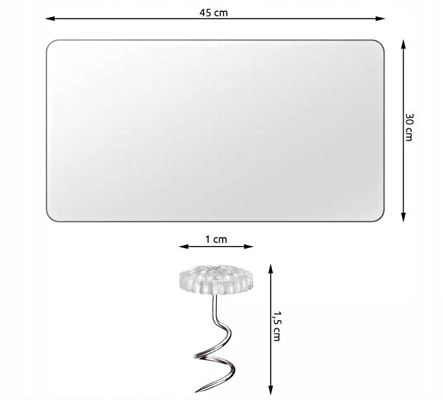 Produkt jest bardzo prosty w montażu – mocny klej zapewnia trwałe i stabilne przyleganie do powierzchni. Dodatkowo w zestawie znajduje się 10 pinezek, które umożliwiają jeszcze solidniejsze zamocowanie folii.