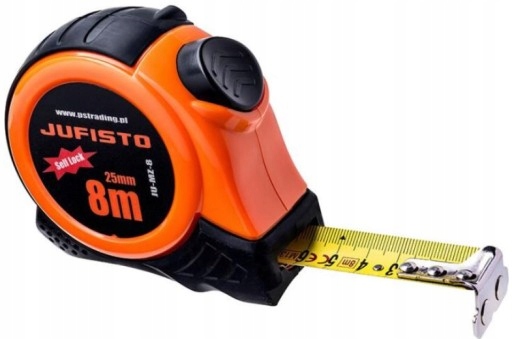 Miara zwijana JUFISTO z taśmą pokrytą nylonem. Gumowa, anty-poślizgowa obudowa gwarantuje pewny chwyt przyrządu. Wyposażona w magnetyczną końcówkę ułatwiającą pomiary. Automatyczna blokada oraz wzmocniony zaczep zapewnią ergonomię użytkowania oraz ułatwią pomiary.