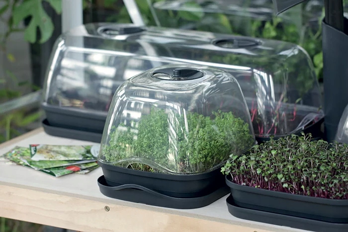Oferujemy mini szklarnię, idealną do hodowli rozsad. Nasz zestaw zapewnia optymalne warunki wzrostu dla Twoich sadzonek, dzięki wysokiej jakości tworzywa sztucznego oraz lekkiego, transparentnego wieka z regulowanymi otworami wentylacyjnymi.