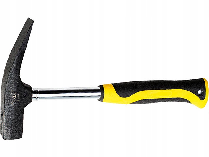 Młotek murarski typ reński z trzonkiem wykonanym ze stalowej rury oraz dwukompozytową, ergonomiczną rękojeścią.