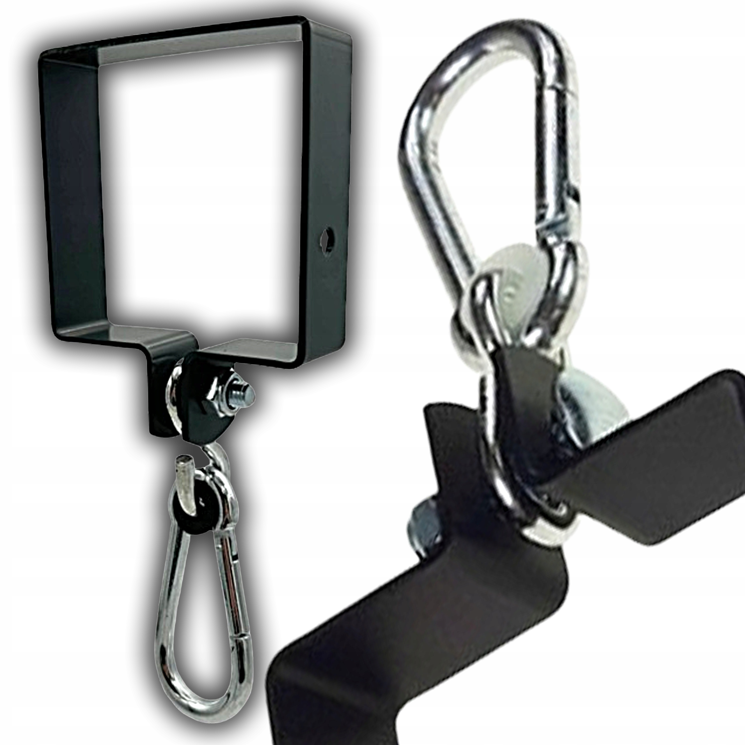 ✳️Obejma do mocowania huśtawki kwadratowa 140 x 140 mm z karabińczykiem — grafitowa