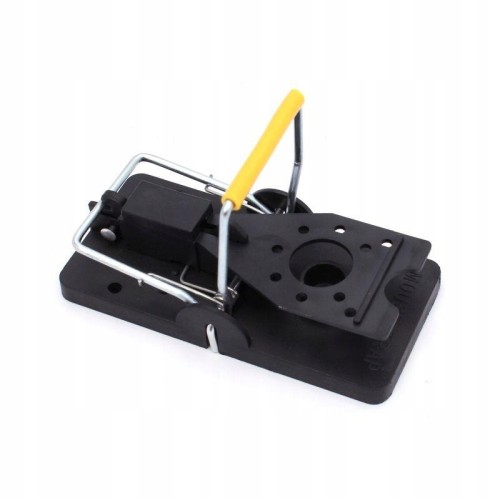 Pułapka na myszy z tworzywa posiada mocną sprężynę oraz metalowy pałąk.