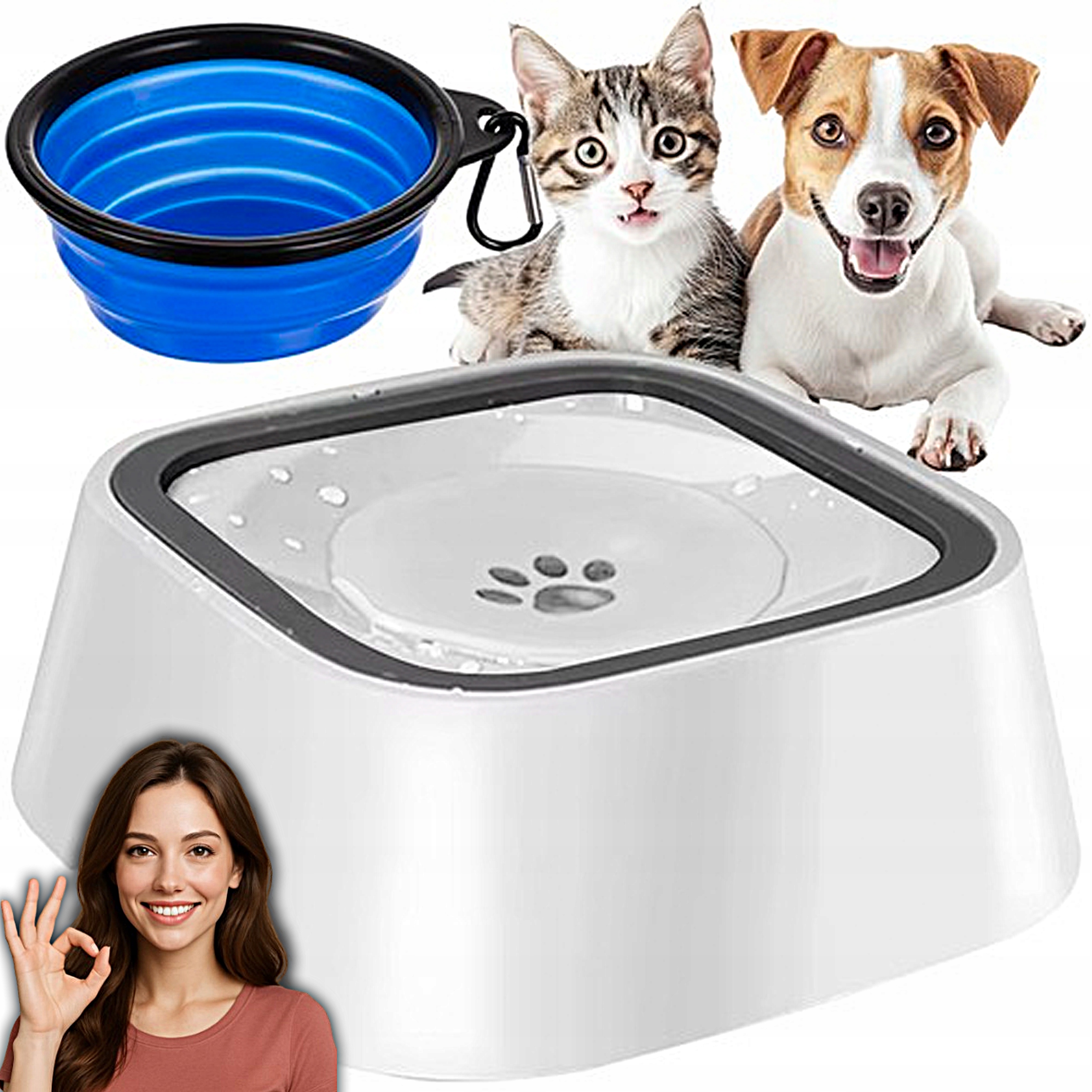 NIECHLAPIĄCA MISKA DLA PSA I KOTA + MISKA TURYSTYCZNA ZESTAW DLA ZWIERZAKÓW