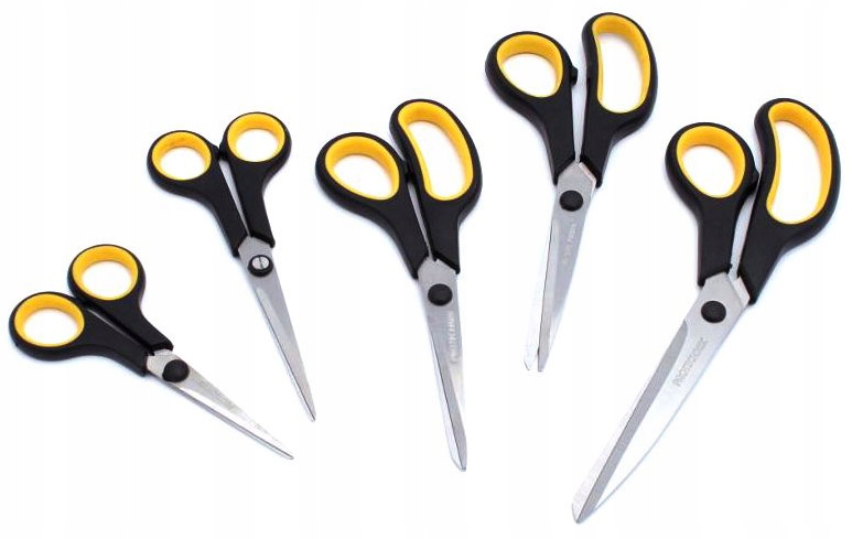 Uniwersalne nożyczki, niezbędne w każdym domu - poręczny zestaw 5szt. Wyprodukowane ze stali nierdzewnej, posiadają dwumateriałowy uchwyt i hartowane ostrza.