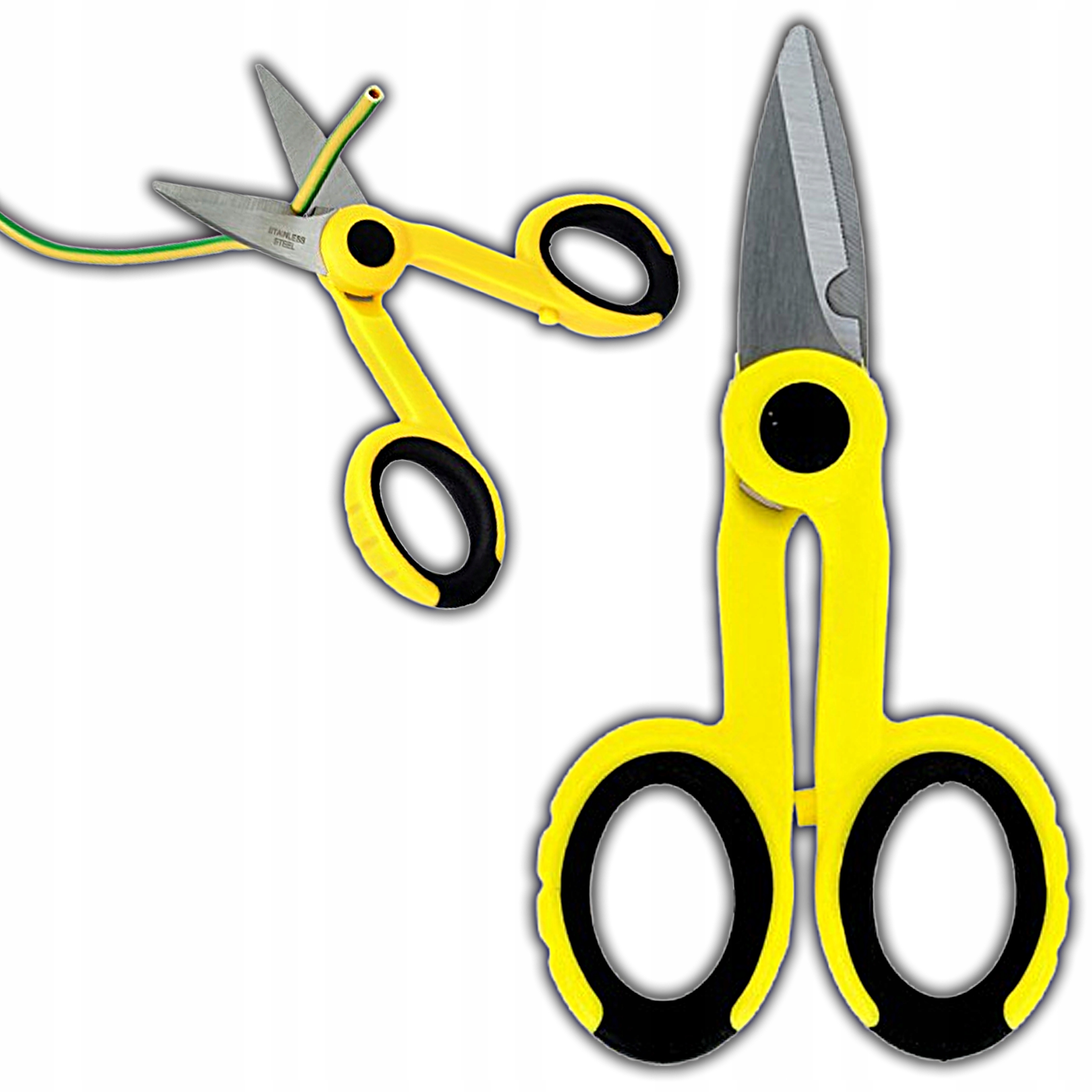 Nożyczki o długości 140 mm, wykonane z hartowanej stali nierdzewnej, gwarantującej wysoką trwałość oraz odporność na korozję. Idealne narzędzie do precyzyjnego cięcia przewodów, kabli oraz taśm izolacyjnych podczas prac elektrycznych i montażowych.