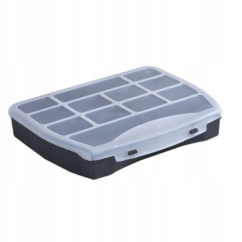 Szczelnie dociśnięta klapka trzyma zawartość w przegródkach.