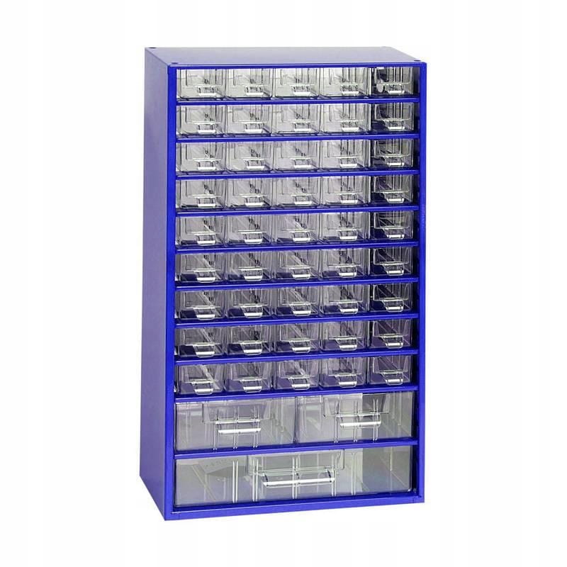 Organizer warsztatowy 306x551x155mm posiada 45 małych szufladek, 2 średnie i 1 dużą.