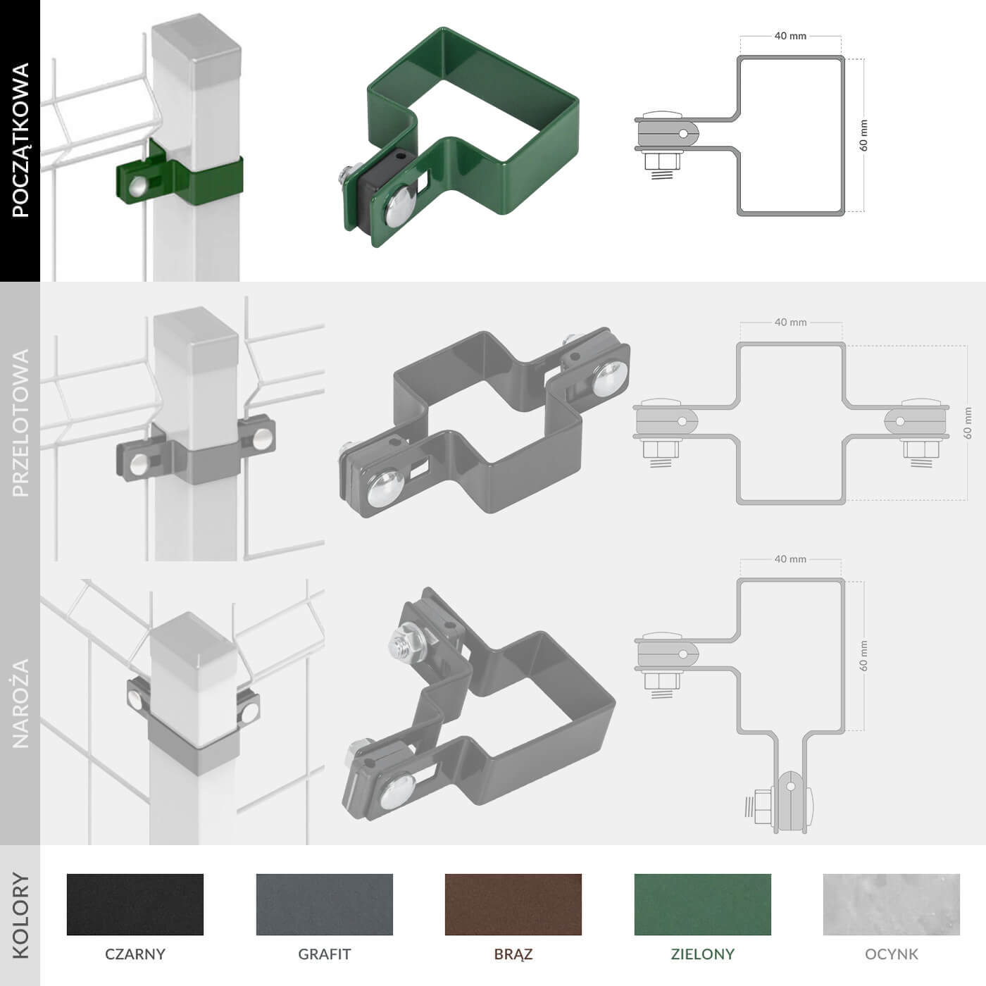 Obejma słupka POCZĄTKOWA 60x40 - ZIELONA do paneli ogrodzeniowych