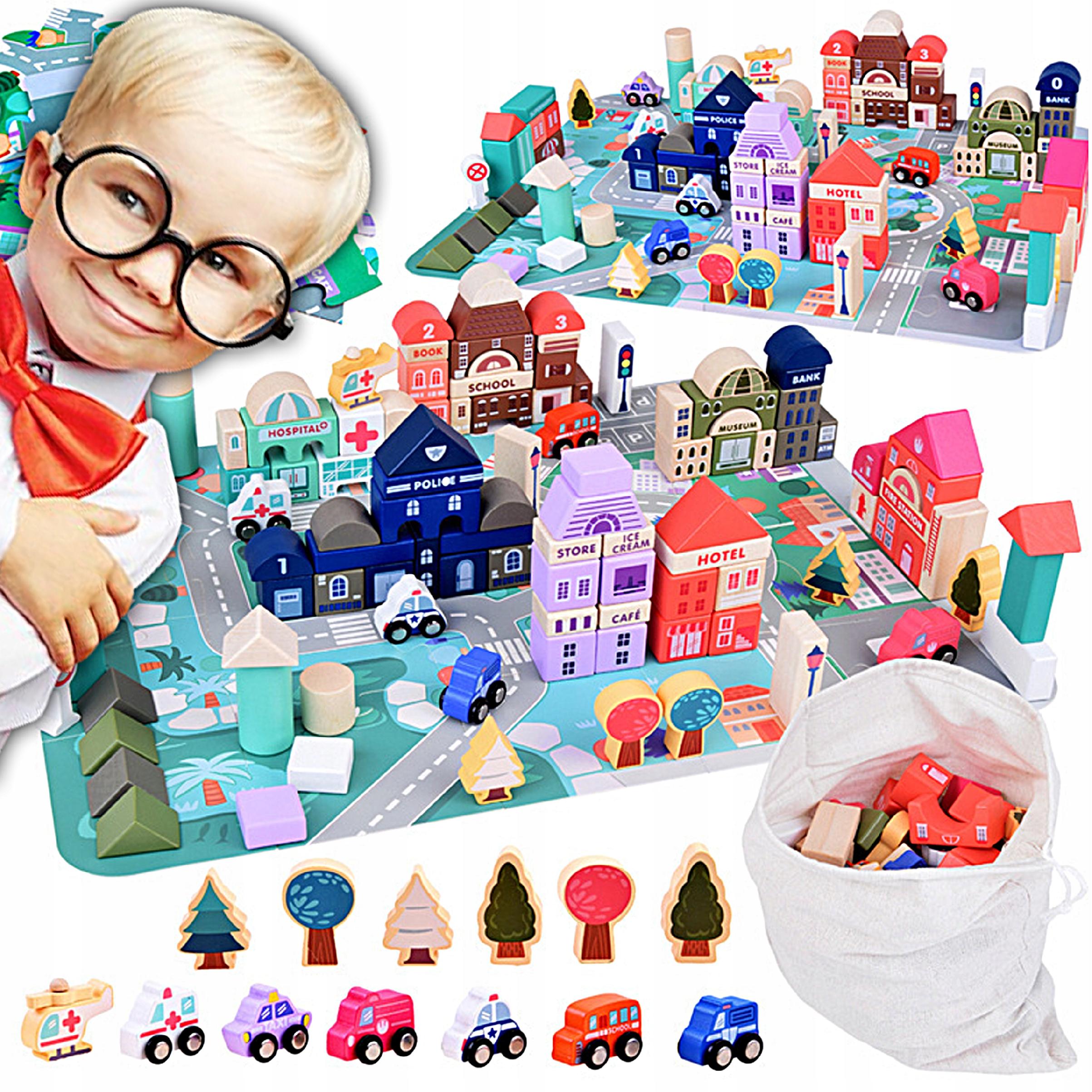 ✳️Duży zestaw drewnianych klocków – zbuduj swoje kolorowe miasteczko!