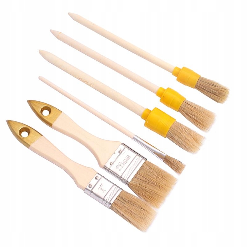 Komplet pędzli: 2 płaskie, 2 okrągłe, 2 paskowce