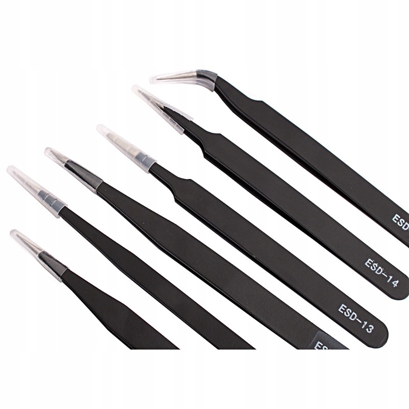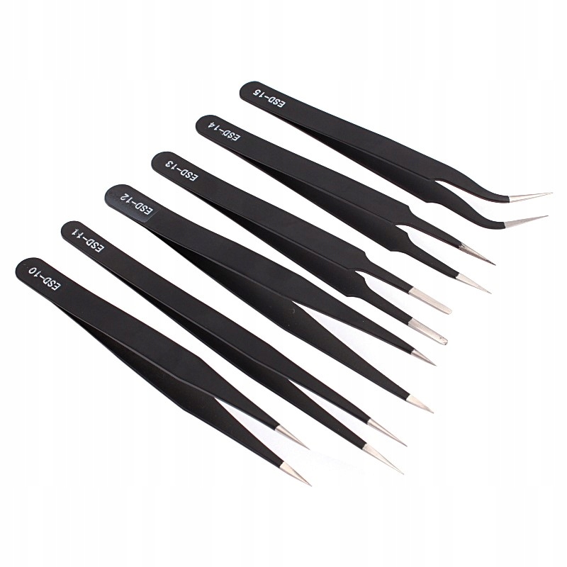 Pęsety antystatyczne ESD 12-14cm do wykonywania precyzyjnych czynności podnoszenia i przenoszenia drobnych elementów. Idealne do zastosowania w elektronice, jubilerstwie, kosmetologii, modelarstwie, akwarystyce, gospodarstwie domowym i wielu innych dziedzinach. Zestaw zawiera pincety o różnych kształtach i rozmiarach, zapewniające wszechstronne użycie. Pinzeta PST16 ma grubość 0.15mm i kod produktu PST16.