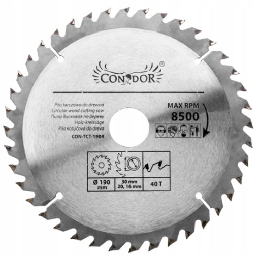 Piła tarczowa z zębami z węglików spiekanych. Zastosowanie do pracy w ręcznych i stołowych pilarkach o napędzie elektrycznym.