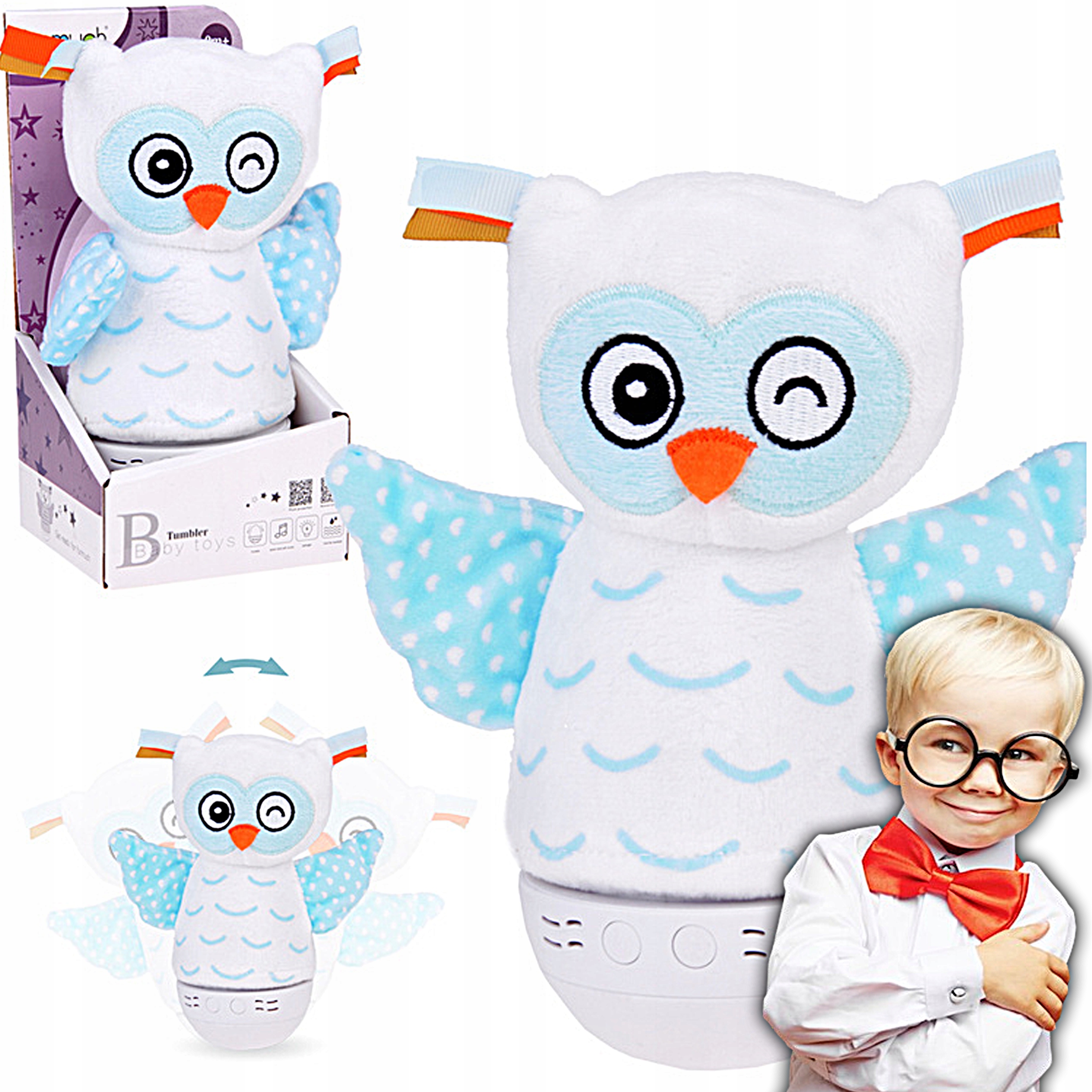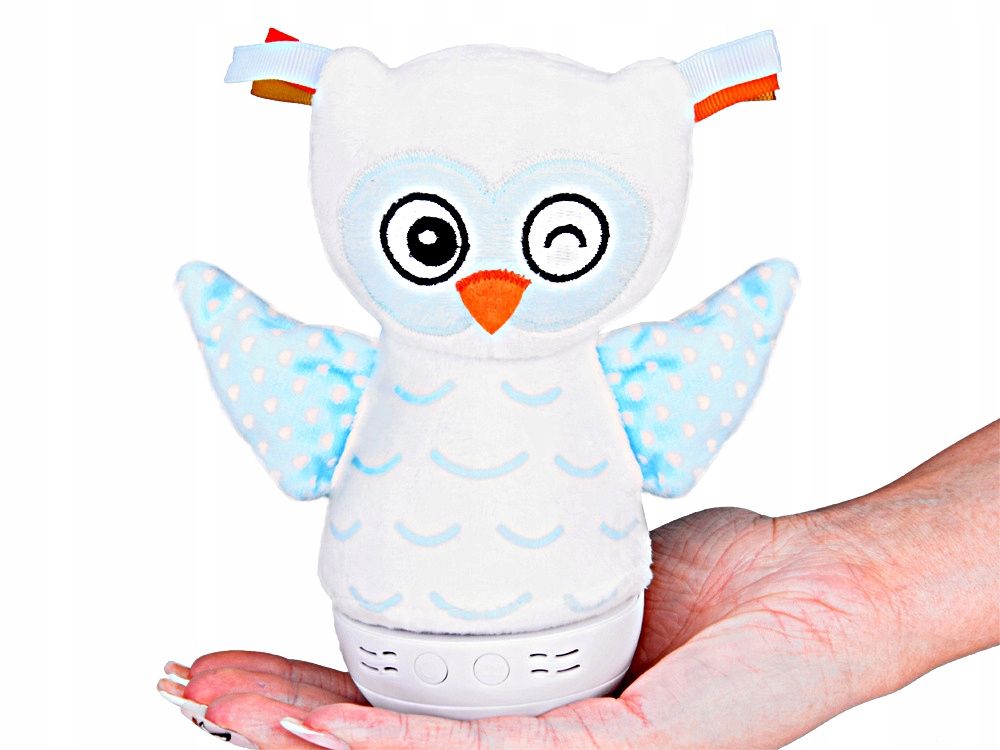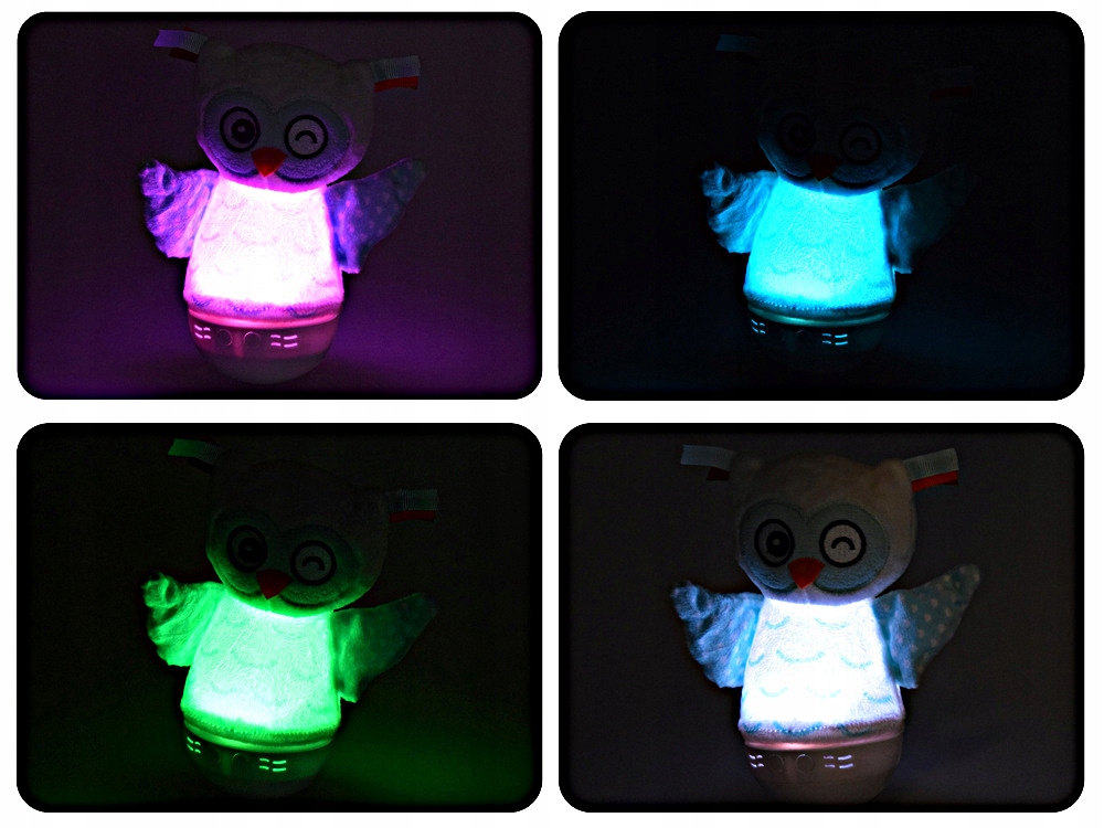 Lampka oświetla pomieszczenie łagodnym światłem, uspokaja kojącymi melodiami i dźwiękami natury, a dodatkowo służy jako dekoracja oraz zabawka – po zdjęciu pluszowej sowy z podstawy może pełnić rolę pacynki lub bańki wstańki.