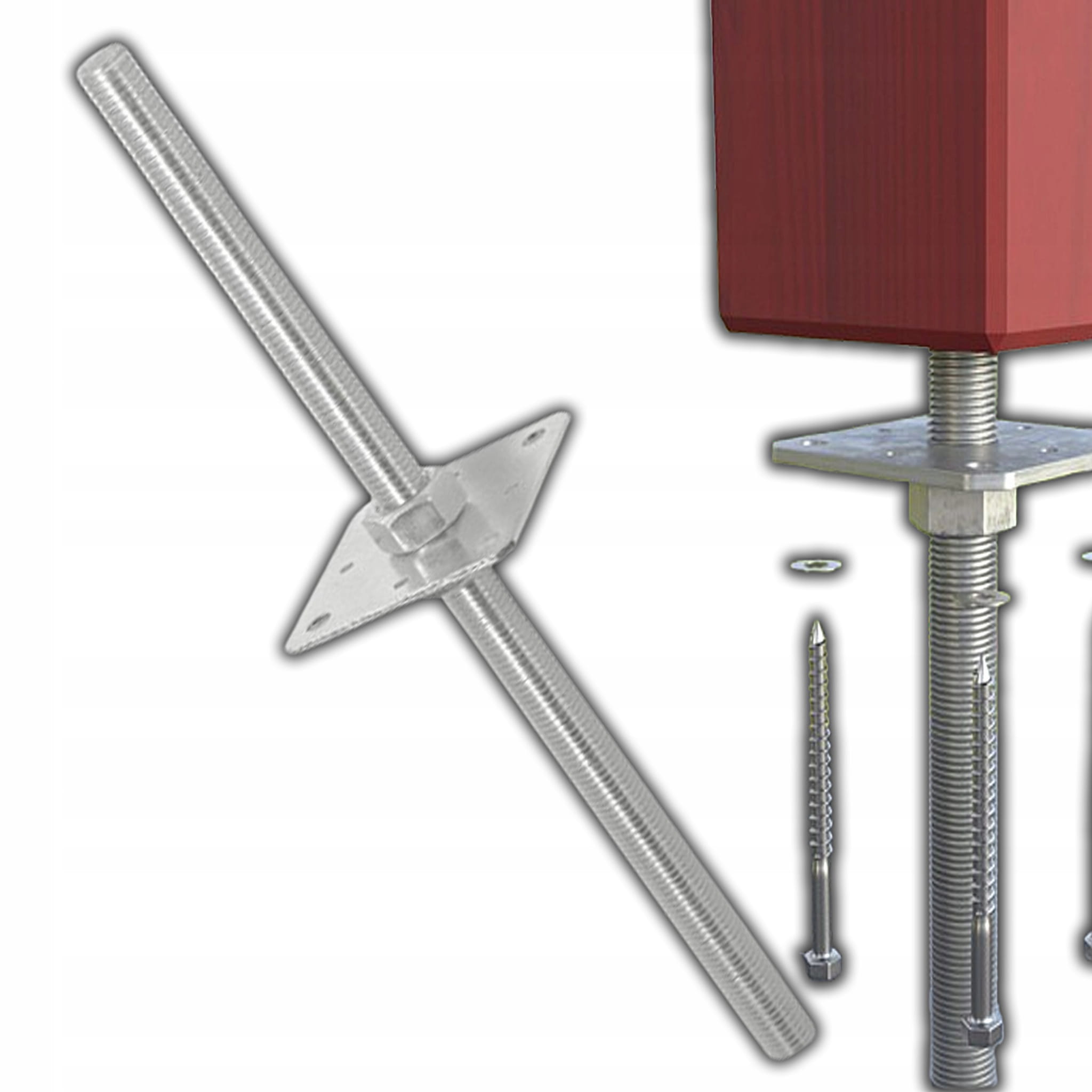✳️PODSTAWA SŁUPA REGULOWANA Z PRĘTEM M24 80x80x500 mm — KOTWA, WSPORNIK