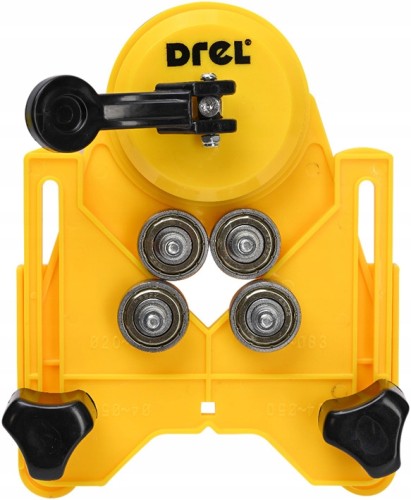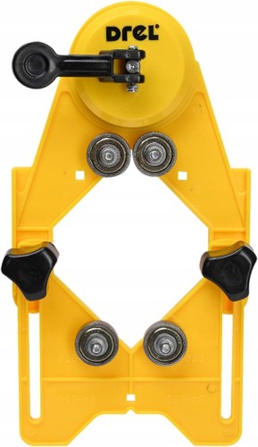 Prowadnica ułatwiająca wykonywanie otworów za pomocą otwornic, koronek i wierteł w płytkach ceramicznych, gresie, glazurze, szkle, metalu i innych materiałach.