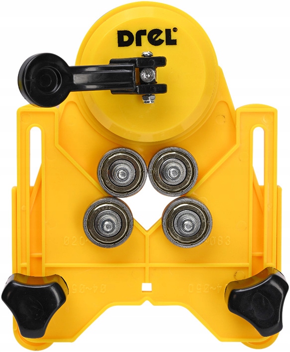 Przymiar mocowany za pomocą gumowej przyssawki. Zdecydowanie lepiej stabilizuje narządzie podczas używania, zapobiega obracaniu prowadnicy, stabilizuje koronkę podczas pracy i uniemożliwia uślizg otwornicy, a tym samym zniszczenie obrabianego materiału.