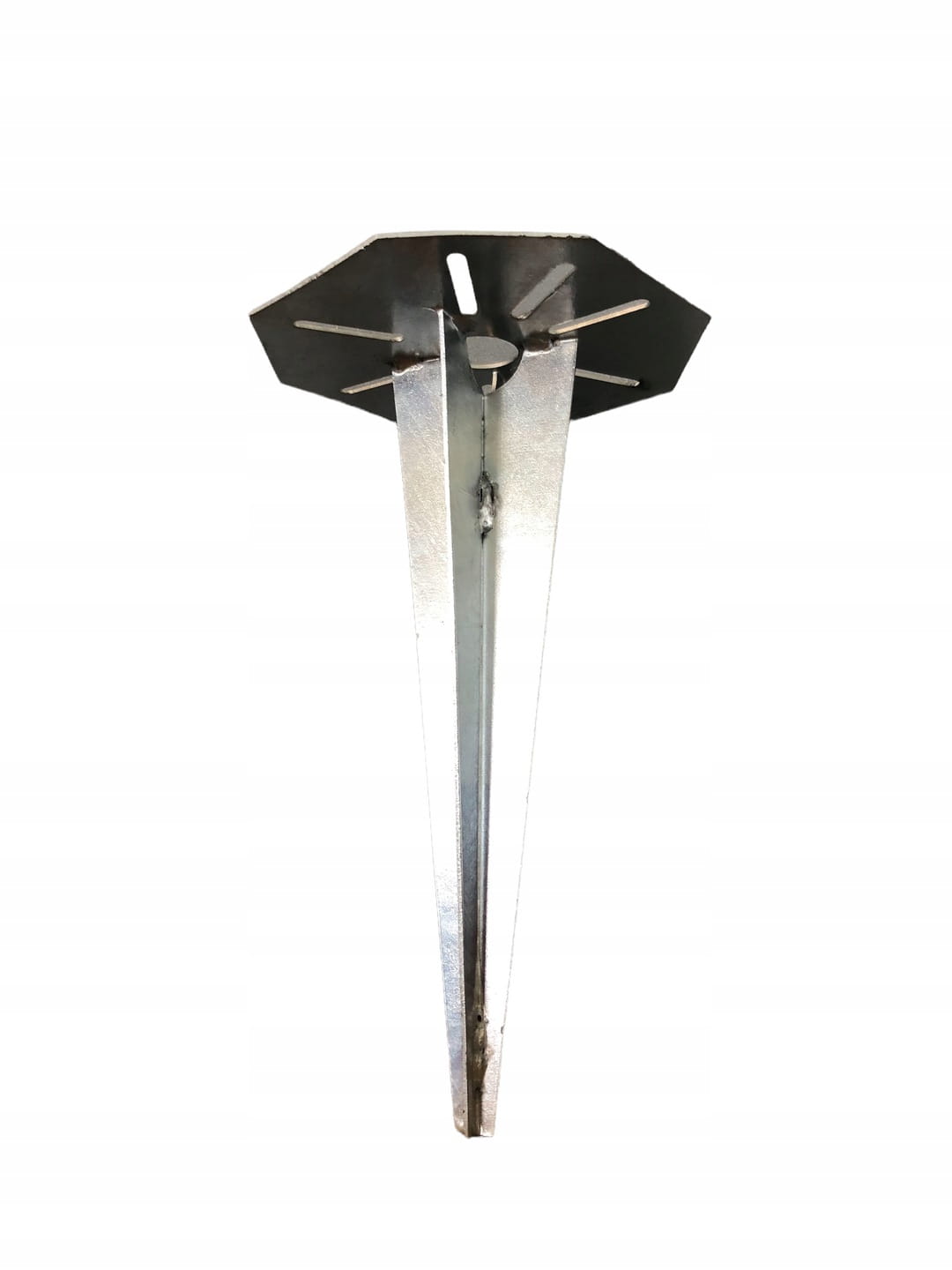 Podstawa wbijana do lamp ogrodowych i gniazd elektrycznych - uniwersalna - montowanych w trawniku. Odpowiednio wiele otworów umożliwia montaż lamp stojących ogrodowych i gniazd elektrycznych ogrodowych o podstawach okrągłych jak i kwadratowych w podstawie i szpicu jest specjalny otwór na przewody elektryczne