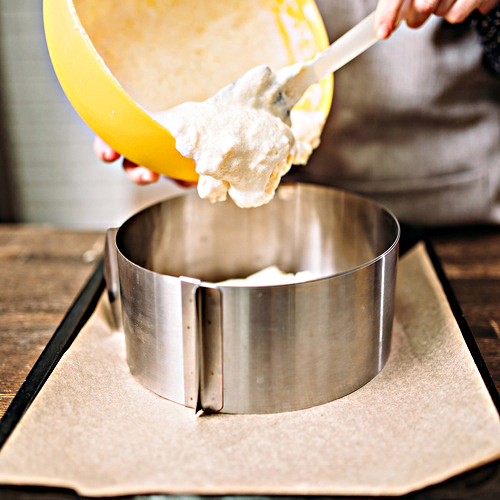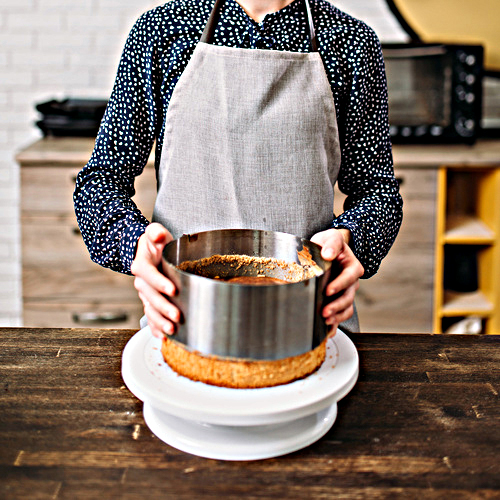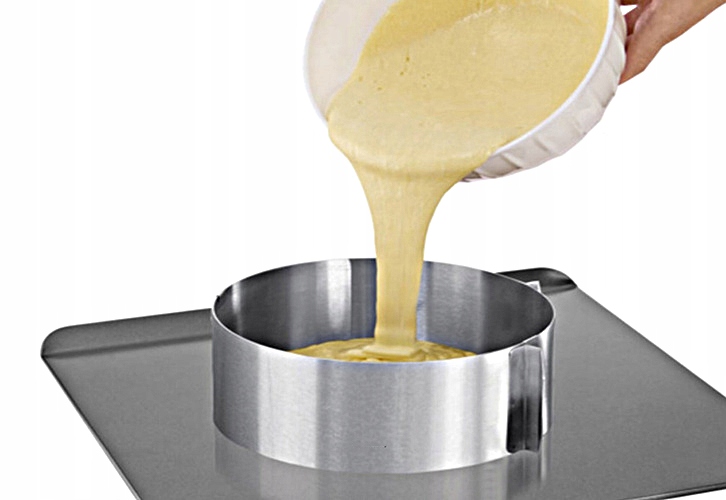 - Funkcjonalność – brak dna pozwala wylewać ciasto na dowolną powierzchnię wyłożoną papierem do pieczenia. Dzięki temu forma jest uniwersalna i łatwa w czyszczeniu.