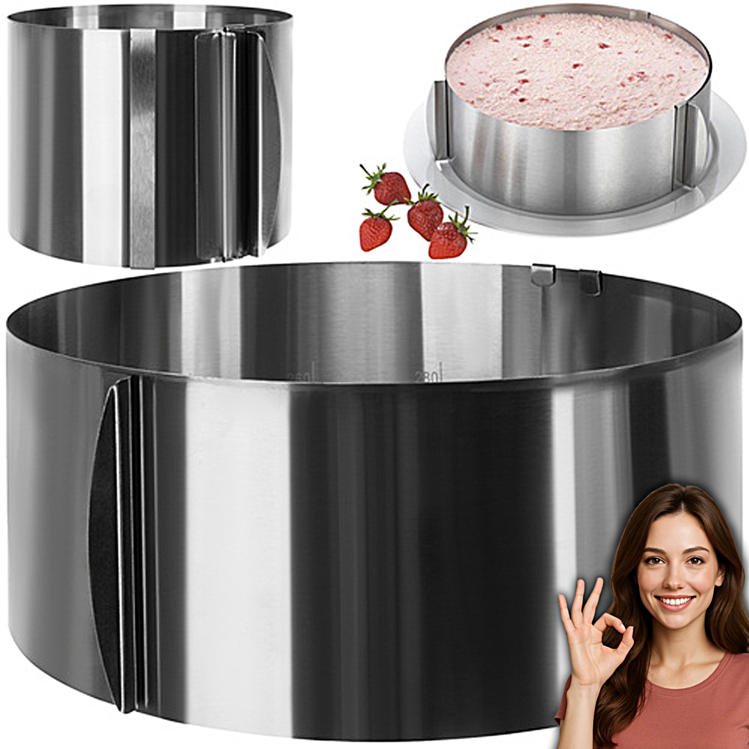 ✳️Regulowana opaska do tortów – stal nierdzewna 16–30 cm