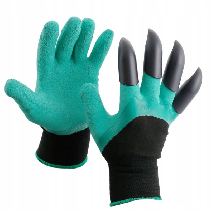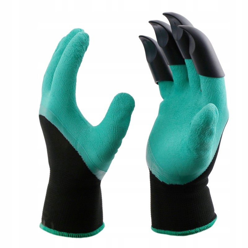 Rękawice z przędzy poliestrowej. Splot tkaniny 13. Powleczone warstwą spienionego lateksu. Ściągacze na nadgarstku dopasowują rękawice do dłoni. Dodatkowe “pazury” są wykonane z twardego i wytrzymałego tworzywa ABS. Tkanina jest wytrzymała. Posiadają szerokie zastosowanie w ogrodzie, przy pracach sezonowych. Chronią dłonie przed zabrudzeniem oraz przypadkowym zranieniem. Rękawice są wodoodporne, łatwo je utrzymać w czystości przepłukując po użyciu wodą