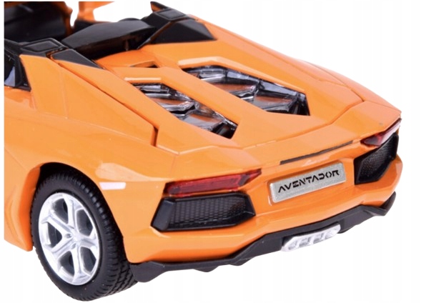 Model Lamborghini Aventador Roadster został bardzo szczegółowo odwzorowany od oryginalnej wersji. Jak przystało na Lamborghini – posiada opływową, agresywną sylwetkę, niskie zawieszenie i ekskluzywny wygląd. To idealny wybór dla fanów sportowych, szybkich i efektownych samochodów!