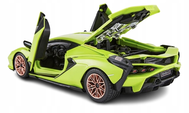 Model wykonany jest z wysokiej jakości komponentów, wiernie odwzorowujących detale prawdziwego Lamborghini Sian FKP 37 – od aerodynamicznej karoserii po charakterystyczne linie sportowego nadwozia.