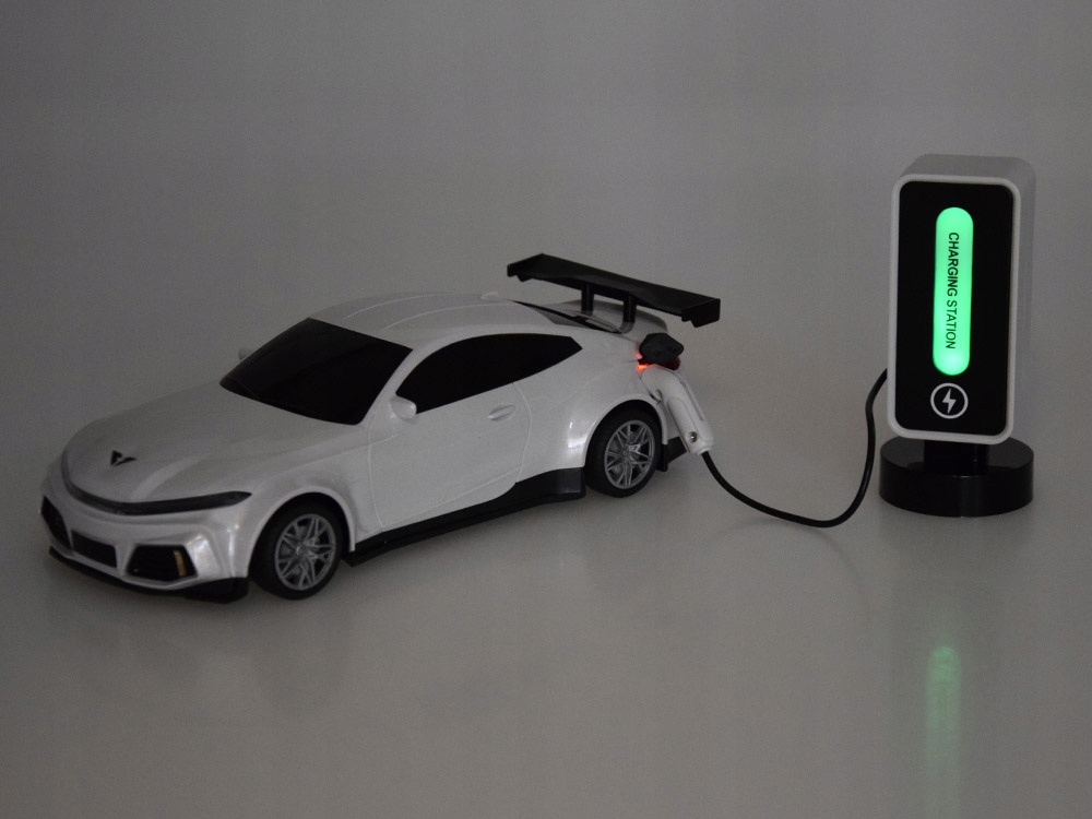 - Realistyczna stacja ładująca, działająca jak w prawdziwych autach elektrycznych