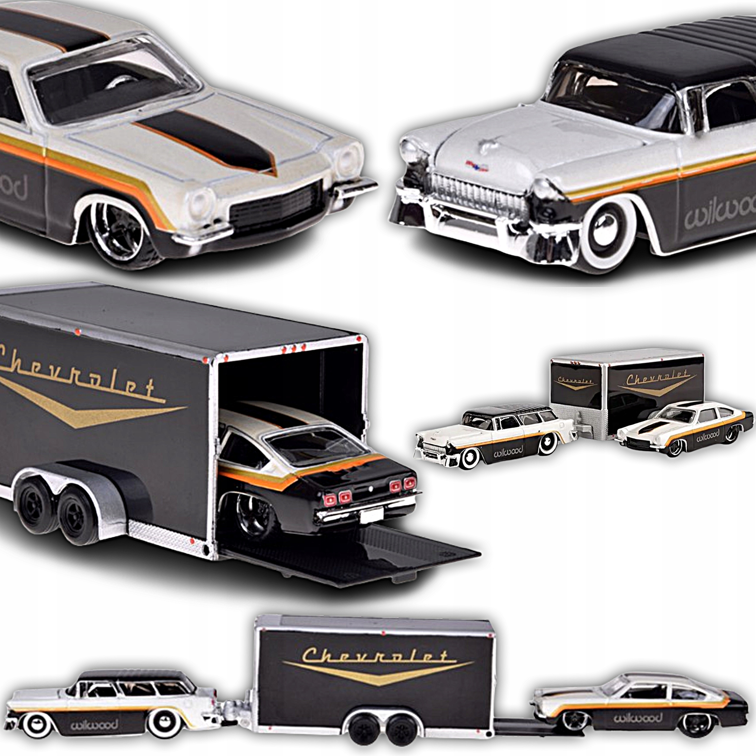 ✳️Licencjonowane auta metalowe 1:64 – Chevrolet Nomad 1955 i Chevrolet Vega 1971 z przyczepką