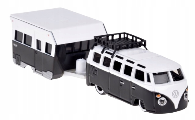 SAMOCHÓD LICENCJONOWANE AUTO VOLKSWAGEN VAN SAMBA PRZYCZEPA 1:64 ZESTAW