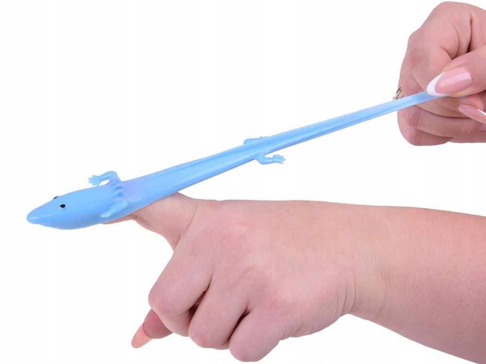 - Prosta obsługa: Wystarczy włożyć palec w otwór pod głową jaszczurki, naciągnąć jej ogon i puścić. Ważne, by nie celować w oczy i inne wrażliwe miejsca.