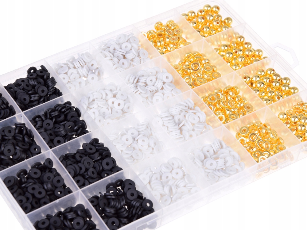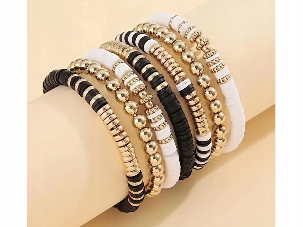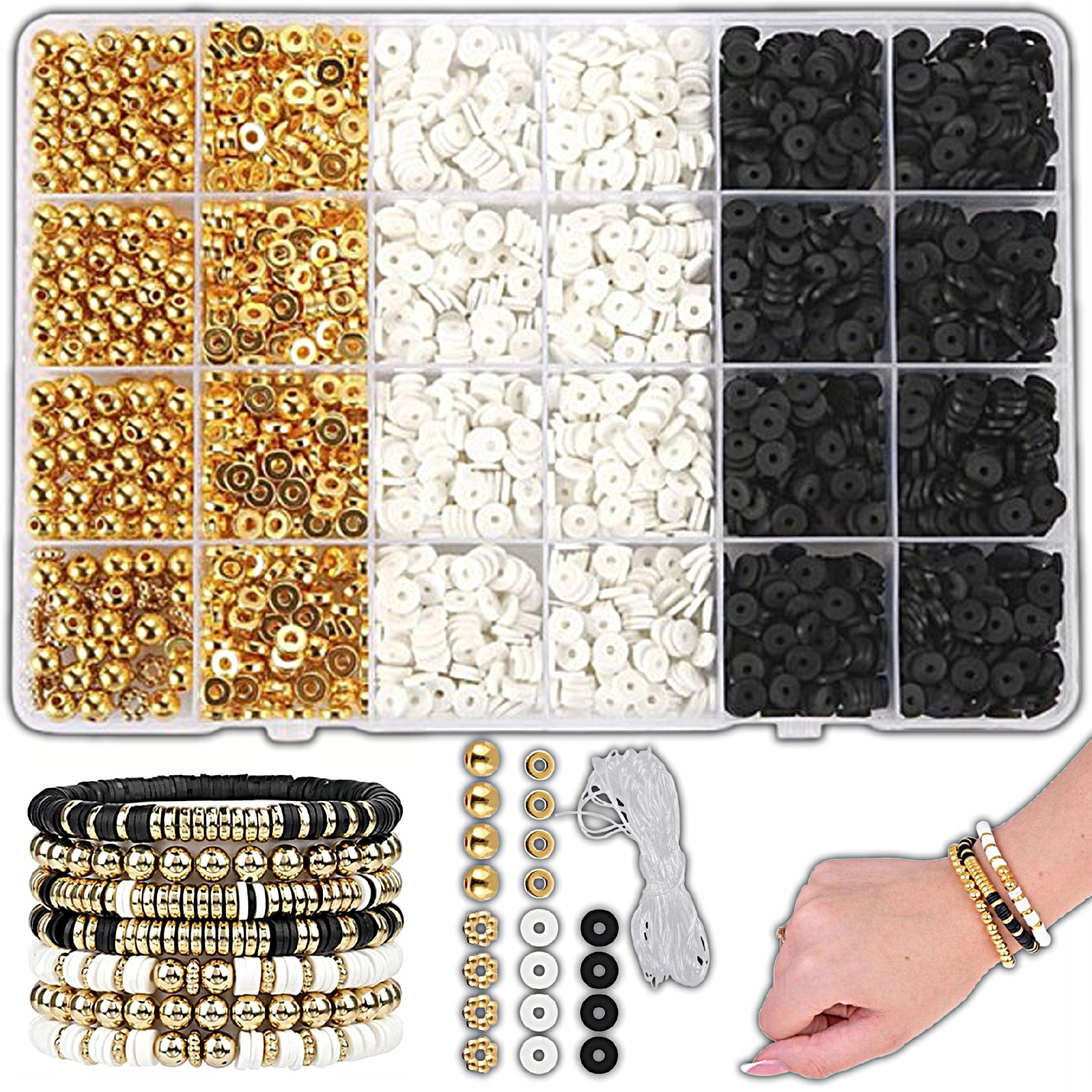 SUPER ZESTAW KORALIKI ZŁOTE CZARNE BIAŁE BRANSOLETKA PRZYJAŹNI ZRÓB TO SAM