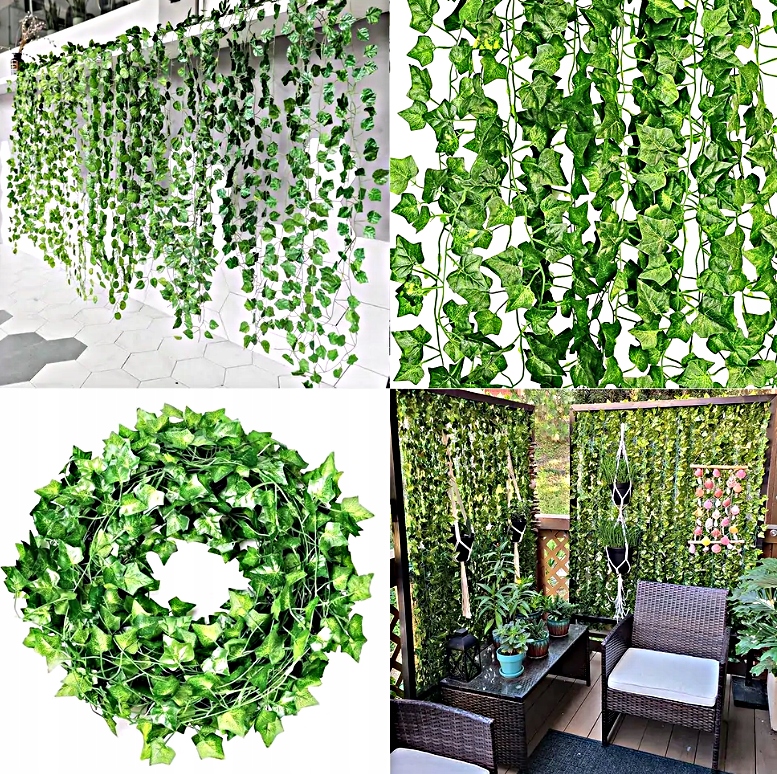 SZTUCZNY BLUSZCZ GIRLANDA NA ŚCIANĘ BALKON OZDOBNE LIŚCIE DEKORACYJNE 50M