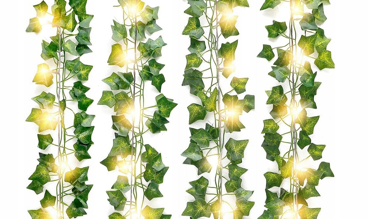 SZTUCZNY BLUSZCZ LED x12 NA ŚCIANĘ BALKON GIRLANDA SZTUCZNE LIŚCIE XXL 25M