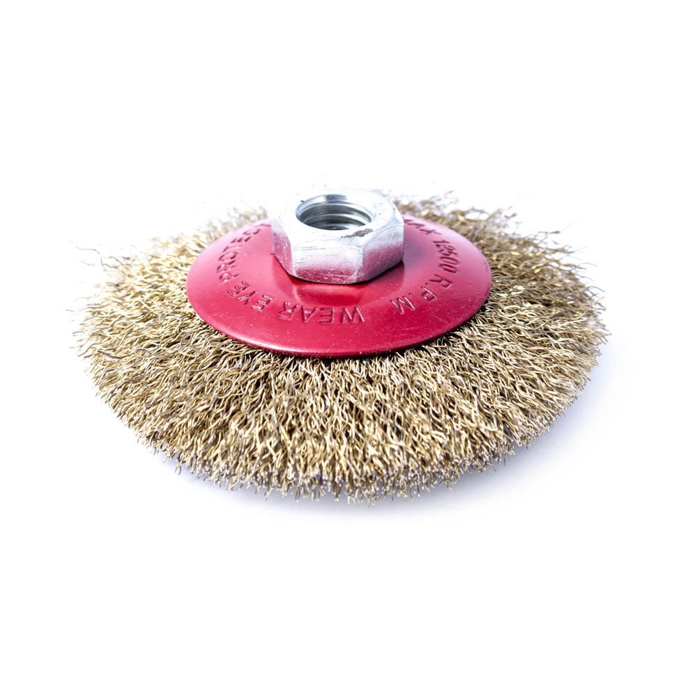 Szczotka TARCZOWA STOŻKOWA 125mm na szlifierkę mosiądz
