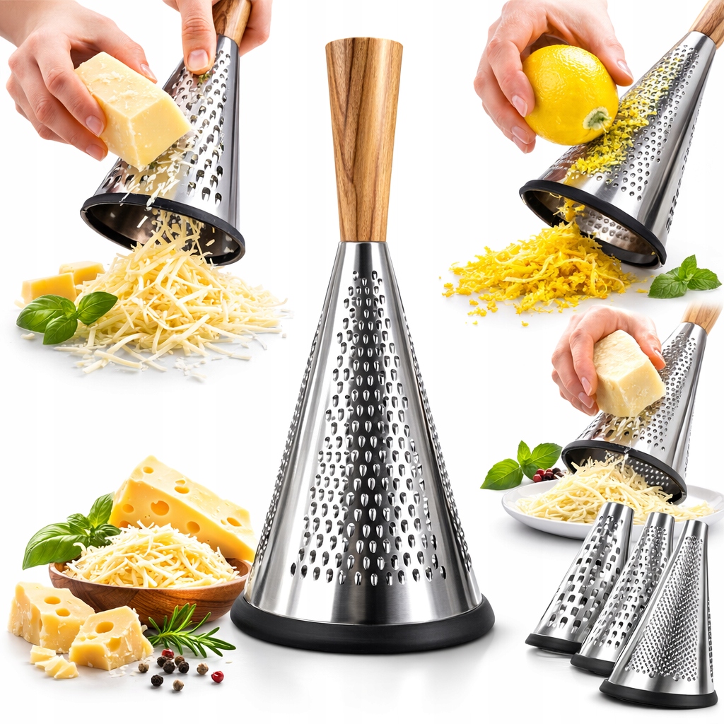 Skrobak cylindryczny wykonany z połączenia naturalnego drewna akacjowego oraz stali nierdzewnej to funkcjonalne i estetyczne narzędzie kuchenne, które sprawdzi się w codziennym przygotowywaniu posiłków. Stożkowa forma oraz trzy rodzaje ostrzy umożliwiają szybkie i wygodne ścieranie serów, warzyw i owoców, dopasowując grubość tarcia do aktualnych potrzeb.