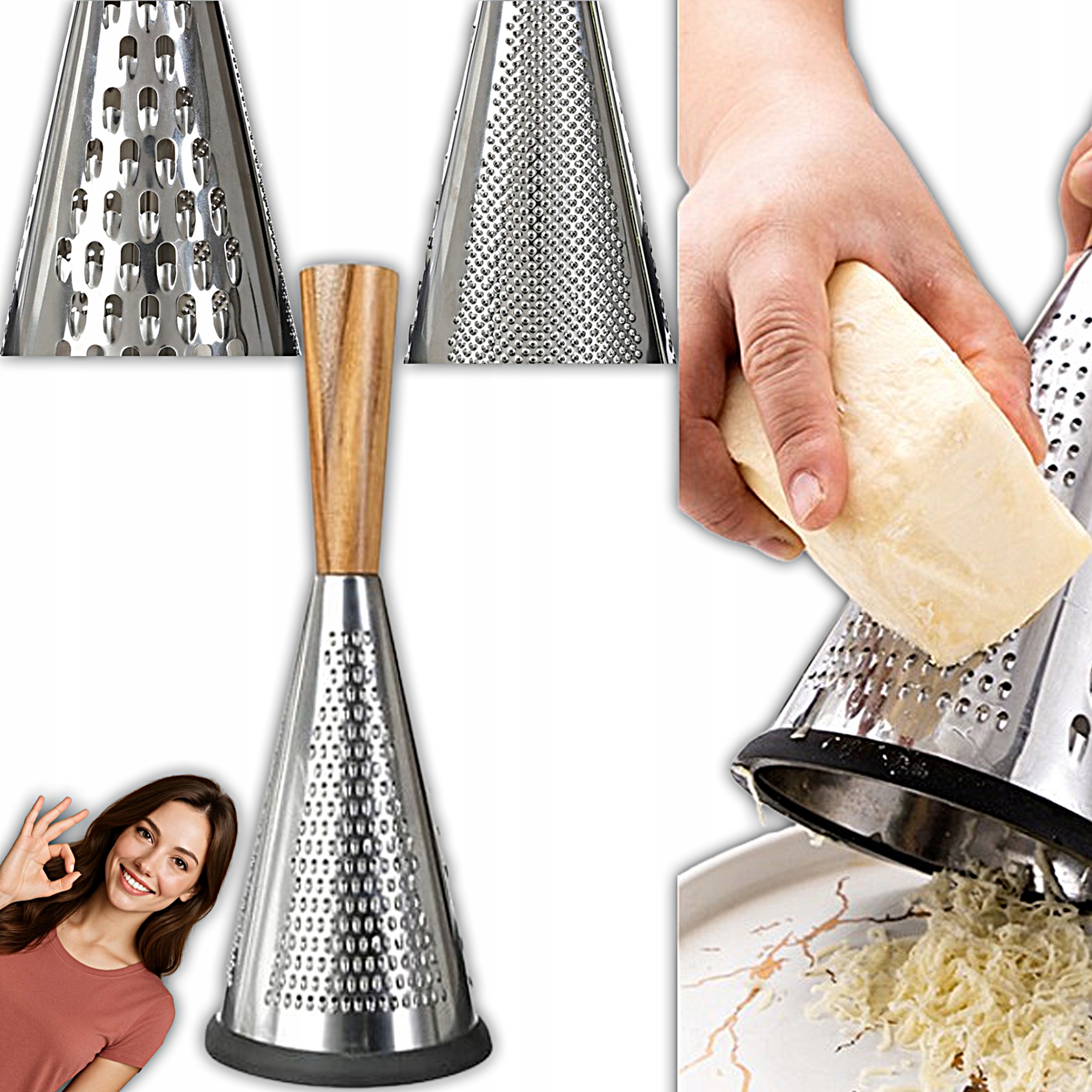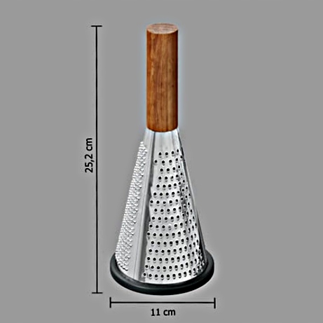✳️Skrobak cylindryczny / tarka stożkowa ze stali nierdzewnej z uchwytem z akacji – bezbarwna