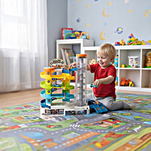 Stwórz własne, wielopoziomowe miasto na wyciągnięcie ręki! Ten interaktywny parking samochodowy to idealna zabawka dla dzieci, które kochają auta, ruch, mechanikę i kreatywną zabawę. Pięć poziomów do jazdy, spiralna winda oraz zestaw samochodów zapewniają ekscytującą rozrywkę, a jednocześnie rozwijają koordynację, logiczne myślenie i umiejętność odgrywania ról.