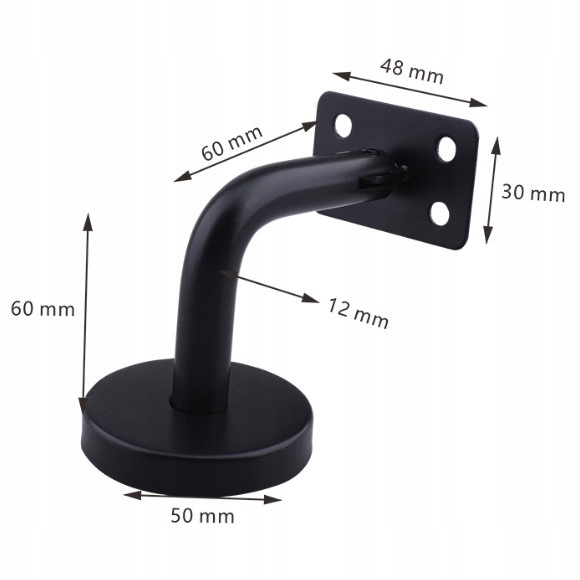 UCHWYT DO PORĘCZY SCHODOWEJ NIERDZEWNY CZARNY PŁASKI Fi MASKOWNICY 50mm