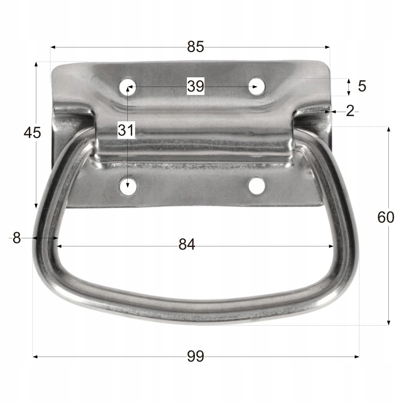 UCHWYT DO SKRZYNI RĄCZKA SKRZYNIOWA POCHWYT NIERDZEWNY 85x45x8mm