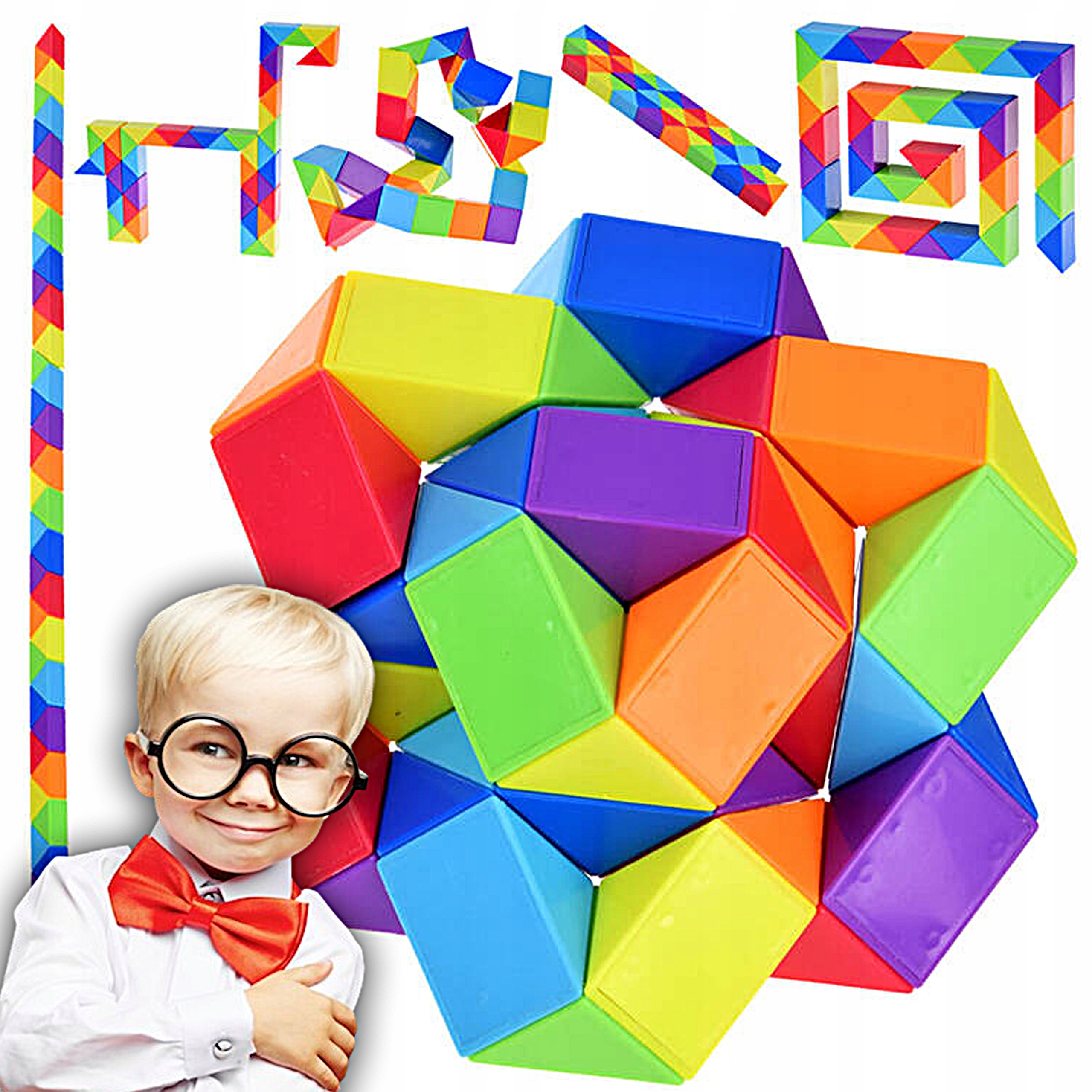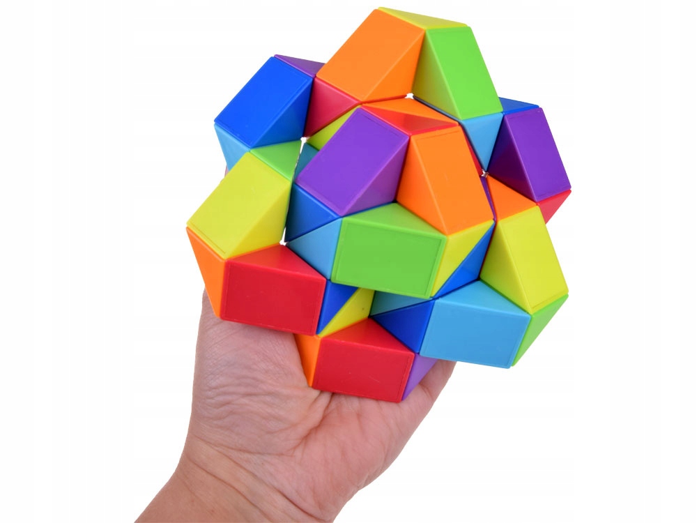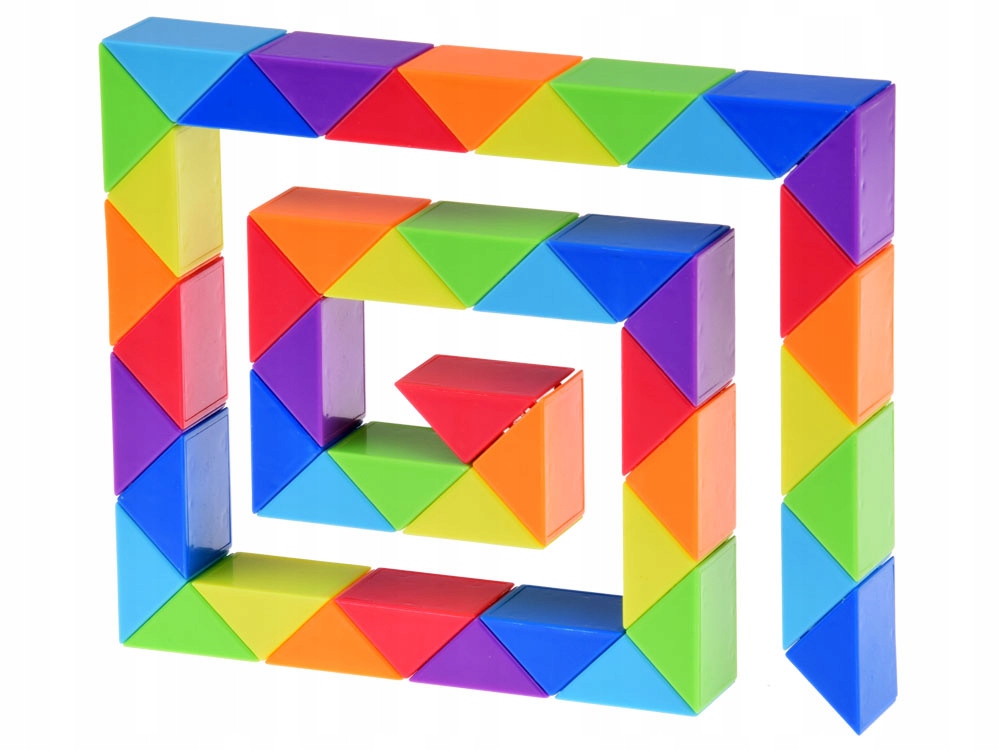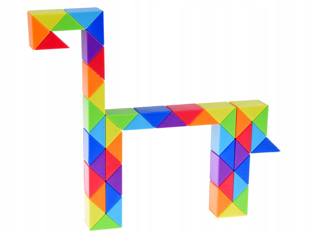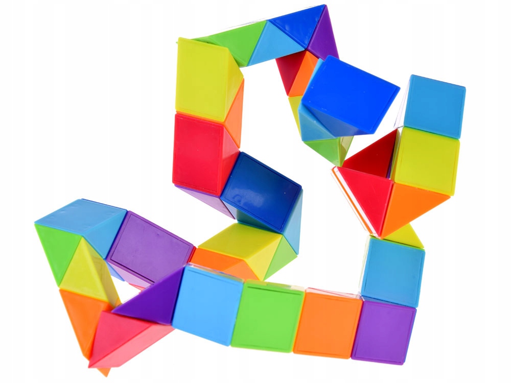 Magic Snake to niezwykła układanka składająca się z 48 połączonych ze sobą kolorowych trójkątów, które można obracać we wszystkich kierunkach, tworząc dowolne kształty i figury. Zacznij od długiego węża, a skończ na kolorowym kwiatuszku, serduszku lub wymyśl własny, unikalny wzór – ogranicza Cię tylko wyobraźnia!