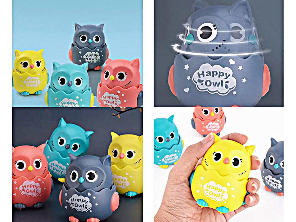 ✳️Kolorowa, urocza sówka z pewnością przyciągnie uwagę każdego maluszka. Zabawka została wykonana w całości z plastiku, ma duże czarne oczka, mały dziobek i przyjazny wygląd. Na spodzie umieszczono małe kółeczka, dzięki którym sówka może swobodnie poruszać się po gładkiej powierzchni.
