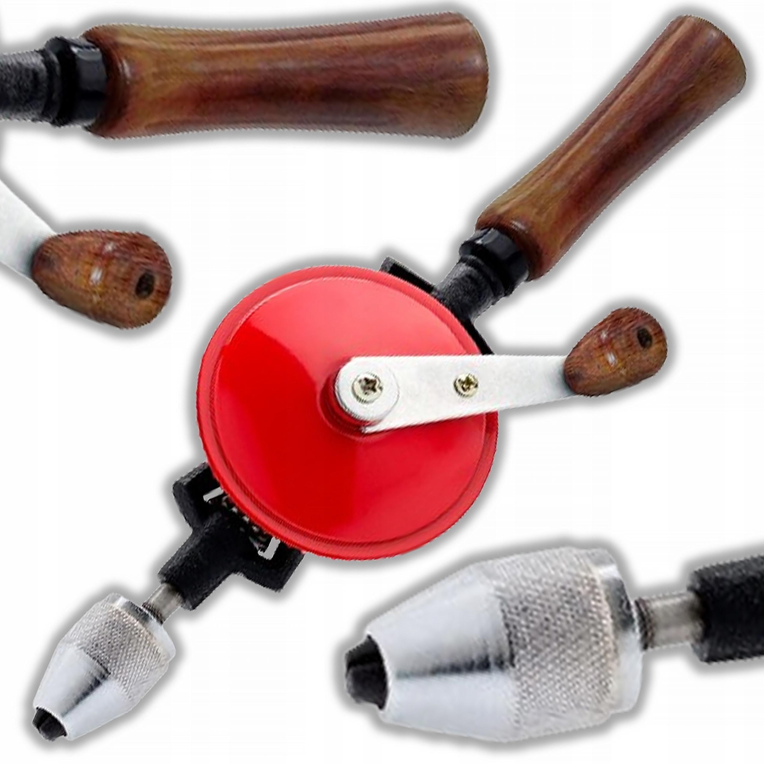 ✳️Wiertarka ręczna z przekładnią – stal narzędziowa, drewniana rękojeść