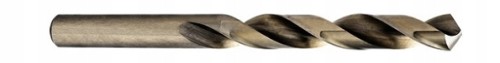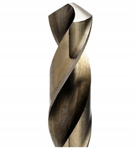 Wiertło wykonane ze stali szybkotnącej (M35) o twardości 66°HRC (+/-1°), kącie wierzchołkowym 135°,szlif prosty bez korekty ścinu, dający właściwości samocentrujące bez konieczności punktowania.